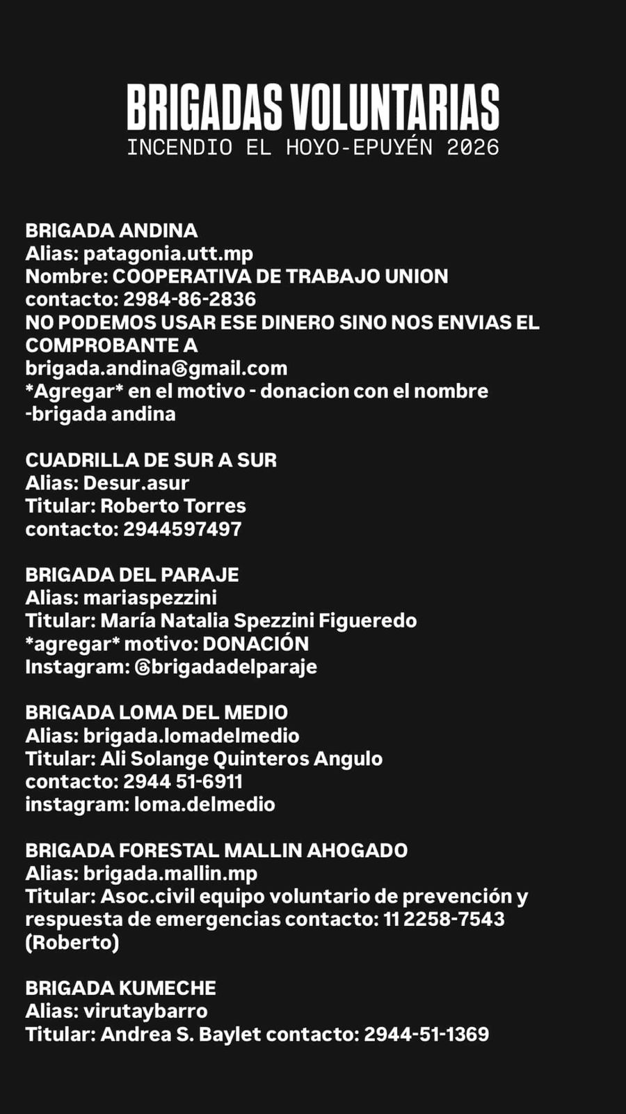 El testimonio de Manu fue publicado en En estos días, una plataforma periodística de la Fundación de Periodismo Patagónico. El video se viralizó, acaso por lo conmovedor, quizás también porque el brigadista es uno de los tantos lugareños que salieron a ponerle el cuerpo al fuego. La zona de El Hoyo arde desde el 5 de enero, cuando advirtieron un foco de incendio en Puerto Patriada. El fuego ya arrasó con más de 1.800 mil hectáreas. Hay unos 3 mil evacuados -entre habitantes y turistas- y viviendas destruidas; animales muertos y otros buscando refugio. Los cambios bruscos de la dirección del viento hacen que el control de las llamas sea difícil.