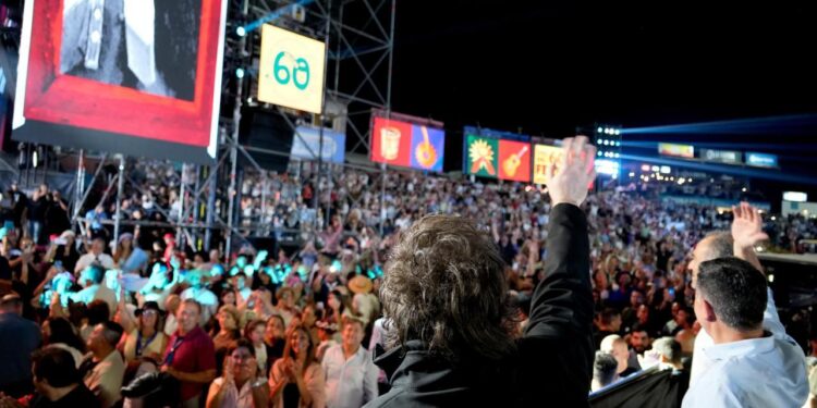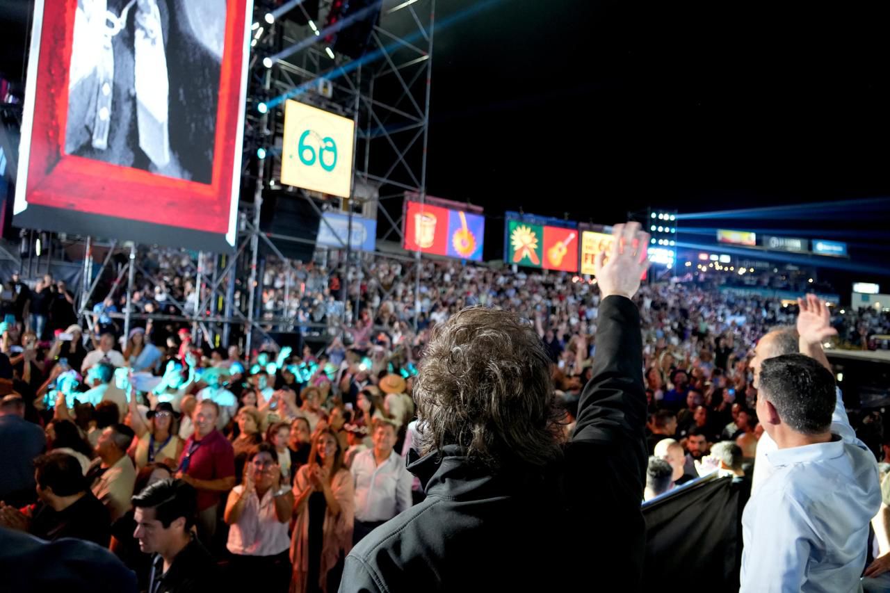 Javier Milei ingresó al anfiteatro José Hernández justo cuando El Chaqueño Palavecino arrancaba su show, en el cierre de la octava noche del Festival Jesús María, en Córdoba. Durante media hora, el director de cámaras de la transmisión oficial fue y vino del escenario al Presidente, que firmaba autógrafos, estrechaba manos y posaba para las selfies. Hasta que El Chaqueño -salteño de origen, 32 años consecutivos en el encuentro de Doma y Folklore- saludó a Milei desde el escenario y le agradeció la visita. «Cómo no le voy a dar las gracias a la provincia que me ayudó a ser Presidente», devolvió Milei.