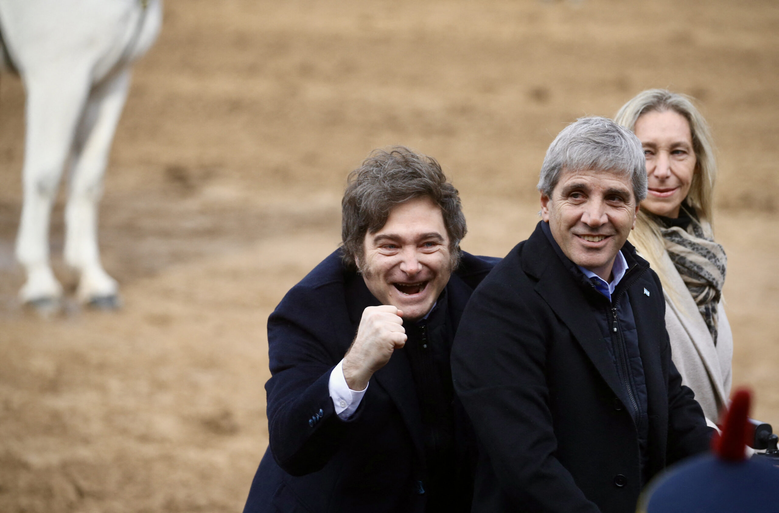 Javier Milei, Luis Caputo y Karina, el año pasado el la exposición rural en Buenos Aires. /AFP